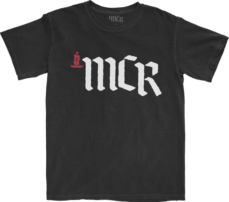 100% cotton vintage black unisex t-shirt with the new "MCR candle logo"