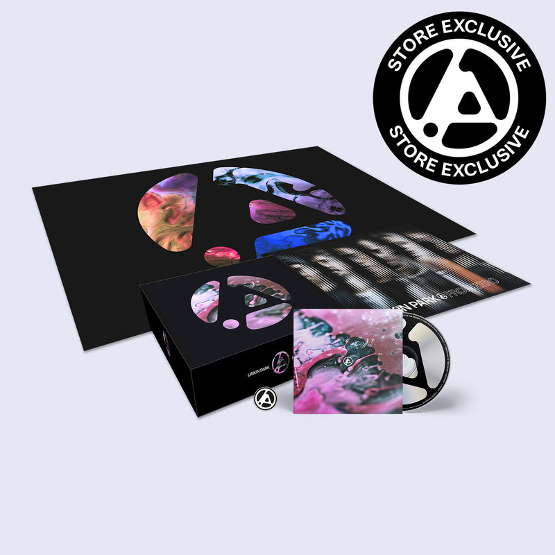 From Zero CD Boxset is a limited format exclusive to the official Linkin Park music store. Features CD, a folded 18" x 13" poster, 24” x 36” flag, and 1” enamel pin, housed in a collectible custom box.